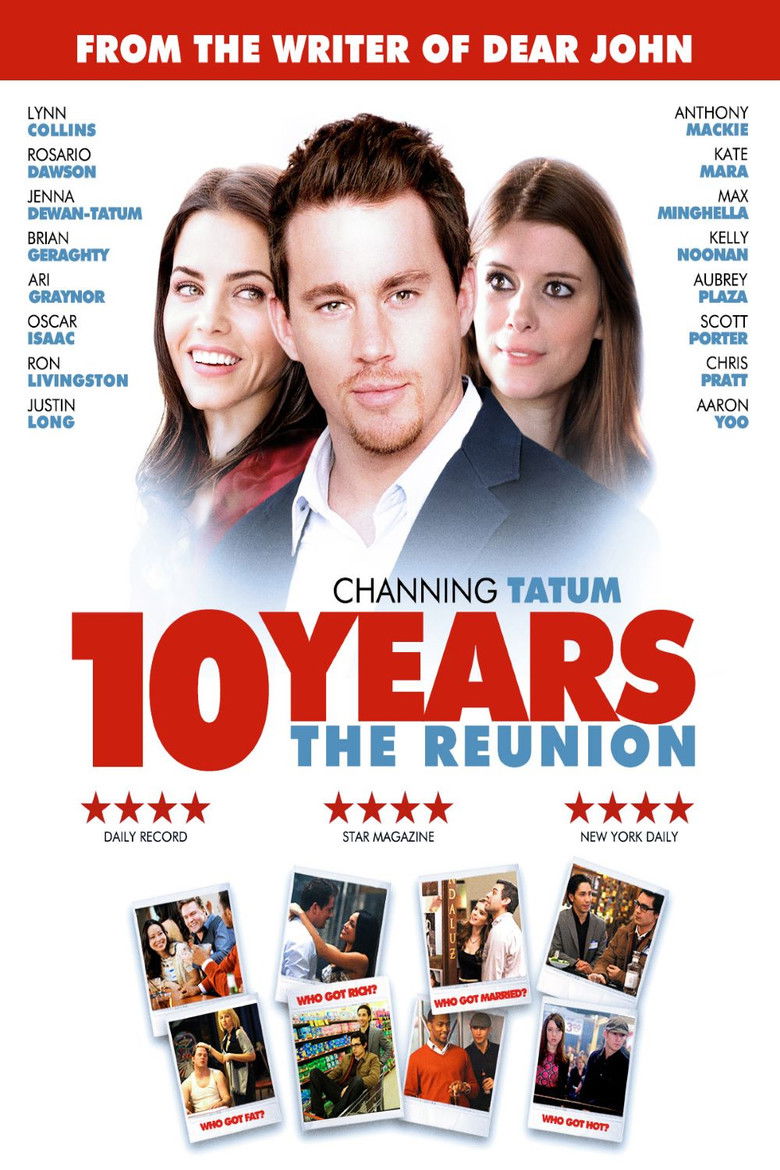 2012 10 Years A group of friends reunite ten years after their high-school graduation. Credits Director Jamie Linden Producers Wyck Godfrey , Eric Gores , Frank Mancuso Jr. Writer Jamie Linden Cinematographer Steven Fierberg Editor Jake Pushinsky Production Design Kara Lindstrom Costume Design Trayce Gigi Field Composer Chad Fischer Cast Channing Tatum , Jenna Dewan , Justin Long , Max Minghella , Oscar Isaac , Chris Pratt , Ari Graynor , Scott Porter , Eiko Nijo , Aubrey Plaza Studios Temple Hill Entertainment , Boss Media , Iron Horse Entertainment , Anchor Bay Films Genres Drama Comedy External IMDb Amazon Posters 5