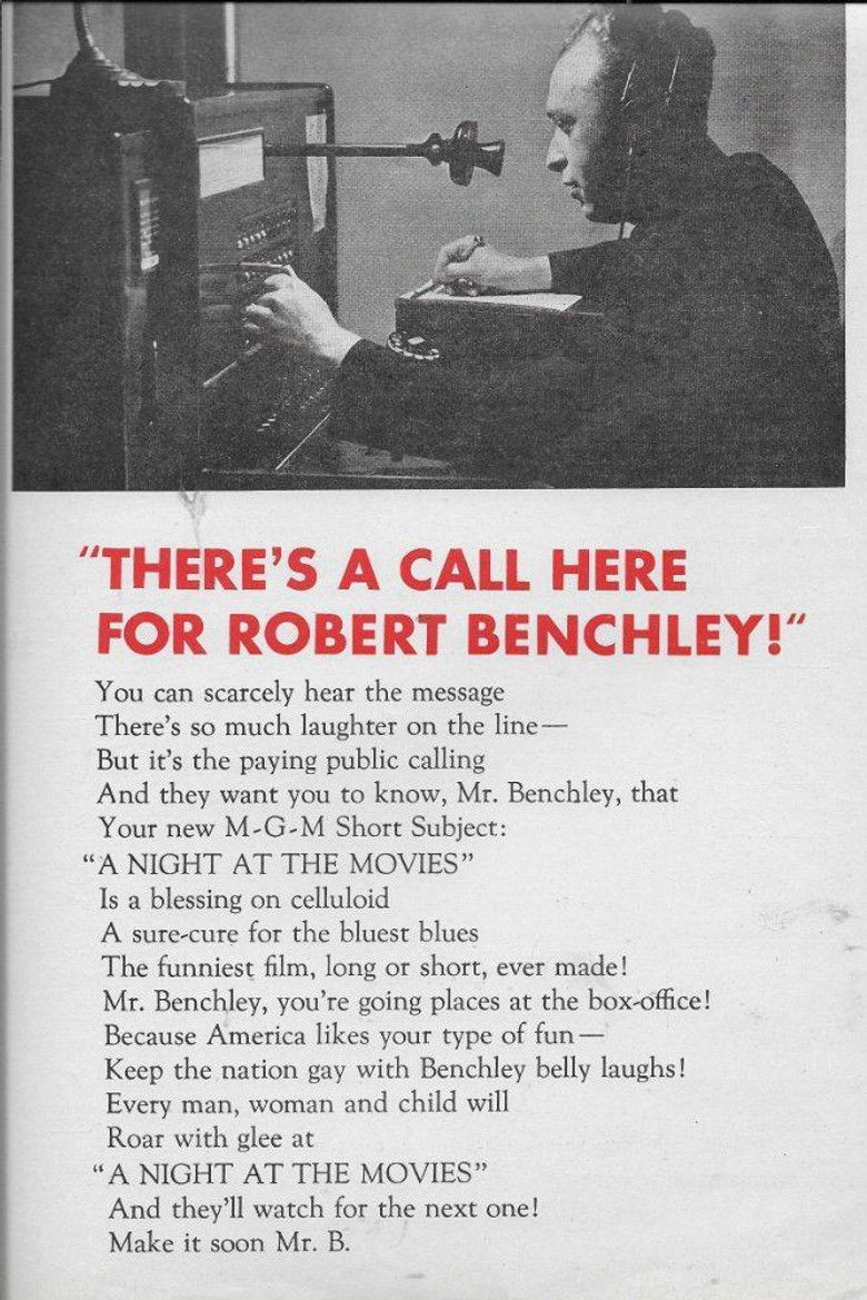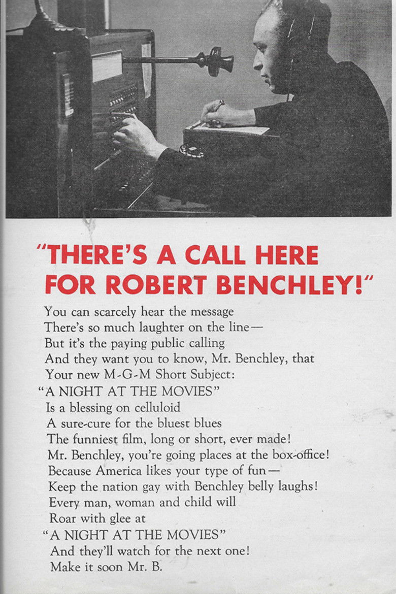 A Night at the Movies is a short film starring Robert Benchley. It was Benchley's greatest success since How to Sleep, and won him a contract for more short films that would be produced in New York. In this comedic short, a man and his wife suffer through a night at the movies. The film was nominated for an Academy Award at the 10th Academy Awards, held in 1937, for Best Short Subject (One-Reel).