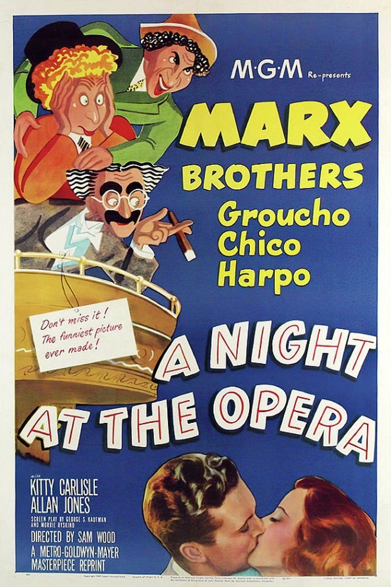 The Marx Brothers take on high society and the opera world to bring two lovers together. A sly business manager and two wacky friends of two opera singers help them achieve success while humiliating their stuffy and snobbish enemies.