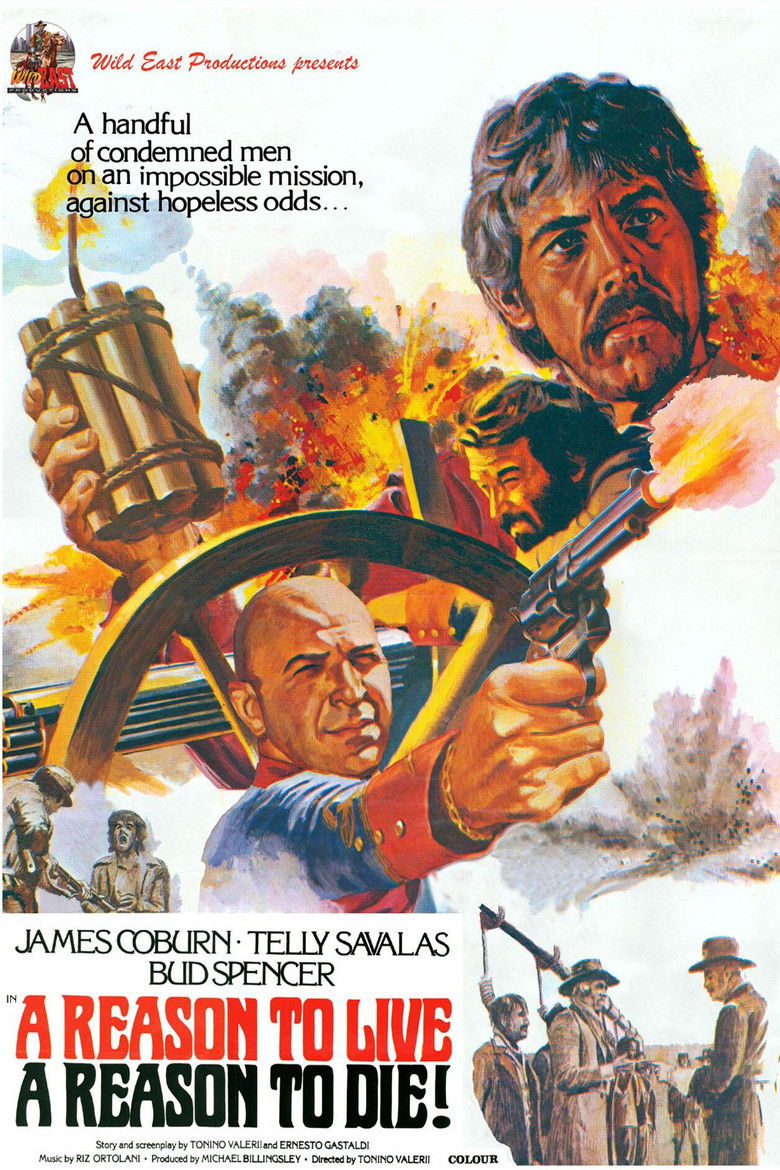 1972 A Reason to Live, a Reason to Die A dishonored Union Army officer leads a group of convicts to retake Fort Holman from the Confederate Army. Credits Director Tonino Valerii Producers Michael Billingsley , Tullio Odevaine , Alfonso Sansone Writers Rafael Azcona , Ernesto Gastaldi , Tonino Valerii Cinematographer Alejandro Ulloa Cast James Coburn , Telly Savalas , Bud Spencer , Georges Géret , Reinhard Kolldehoff , Guy Mairesse , José Suárez , Ugo Fangareggi , Benito Stefanelli , Adolfo Lastretti Studio Atlántida Films Genre Western External IMDb Posters 5 US theatrical US international US character US teaser US imax
