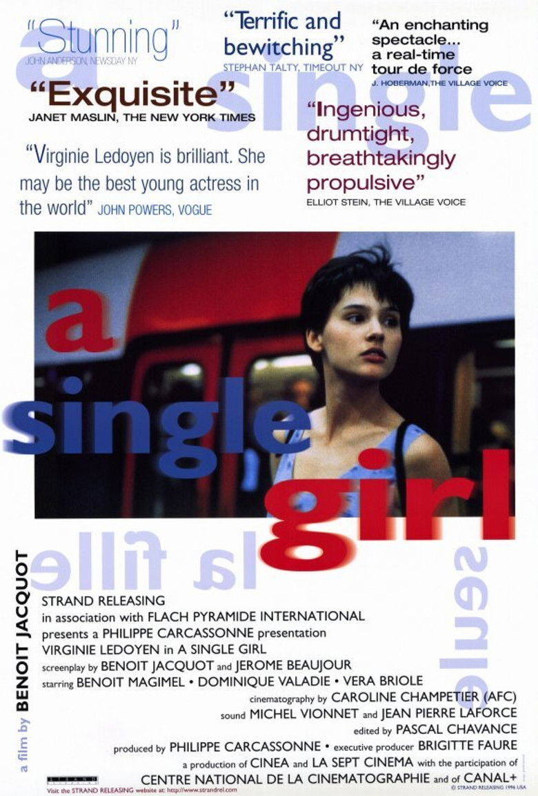 1995 A Single Girl A young Parisian must make major decisions about pregnancy, a job and her boyfriend. Credits Director Benoît Jacquot Producers Philippe Carcassonne , Brigitte Faure Writers Jérôme Beaujour , Benoît Jacquot Cinematographer Caroline Champetier Cast Virginie Ledoyen , Benoît Magimel , Dominique Valadié , Michel Bompoil , Véra Briole , Toni Cecchinato , Virginie Emane , Jean-Claude Frissung , Hervé Gamelin , Guillemette Grobon Studios Cinéa , La Sept Cinéma Genre Drama Posters 5 US theatrical US international US character US teaser US imax