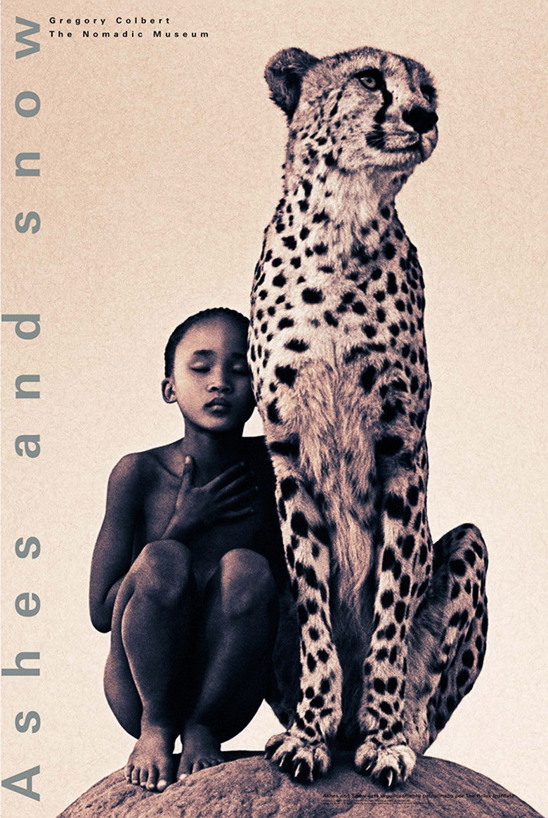 Ashes and Snow, a film by Gregory Colbert, uses both still and movie cameras to explore extraordinary interactions between humans and animals. The 60-minute feature is a poetic narrative rather than a documentary. It aims to lift the natural and artificial barriers between humans and other species, dissolving the distance that exists between them.
