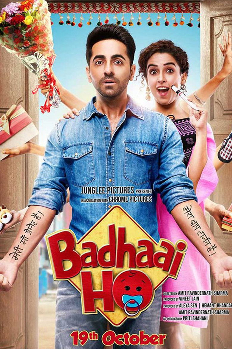 2018 Badhaai Ho A 25-year-old man tries to suppress his embarrassment when his mother announces that she is pregnant. Credits Director Amit Sharma Producers Amit Sharma , Vineet Jain , Tarun Bali Writers Jyoti Kapoor , Akshat Ghildial , Shantanu Srivastava Cinematographer Sanu John Varghese Editor Dev Rao Jadhav Costume Designs Kirti Kolwankar , Rose Maria Tharakan Composers Sunny Bawra , Rochak Kohli , Inder Bawra , Tanishk Bagchi Cast Ayushmann Khurrana , Neena Gupta , Gajraj Rao , Sanya Malhotra , Surekha Sikri , Sheeba Chaddha , Alka Kaushal , Alka Amin , Ratheesh Balakrishnan Poduval , Monica Patel Studios Junglee Pictures , Chrome Pictures Genres Romance Drama Comedy External IMDb Amazon Posters 5