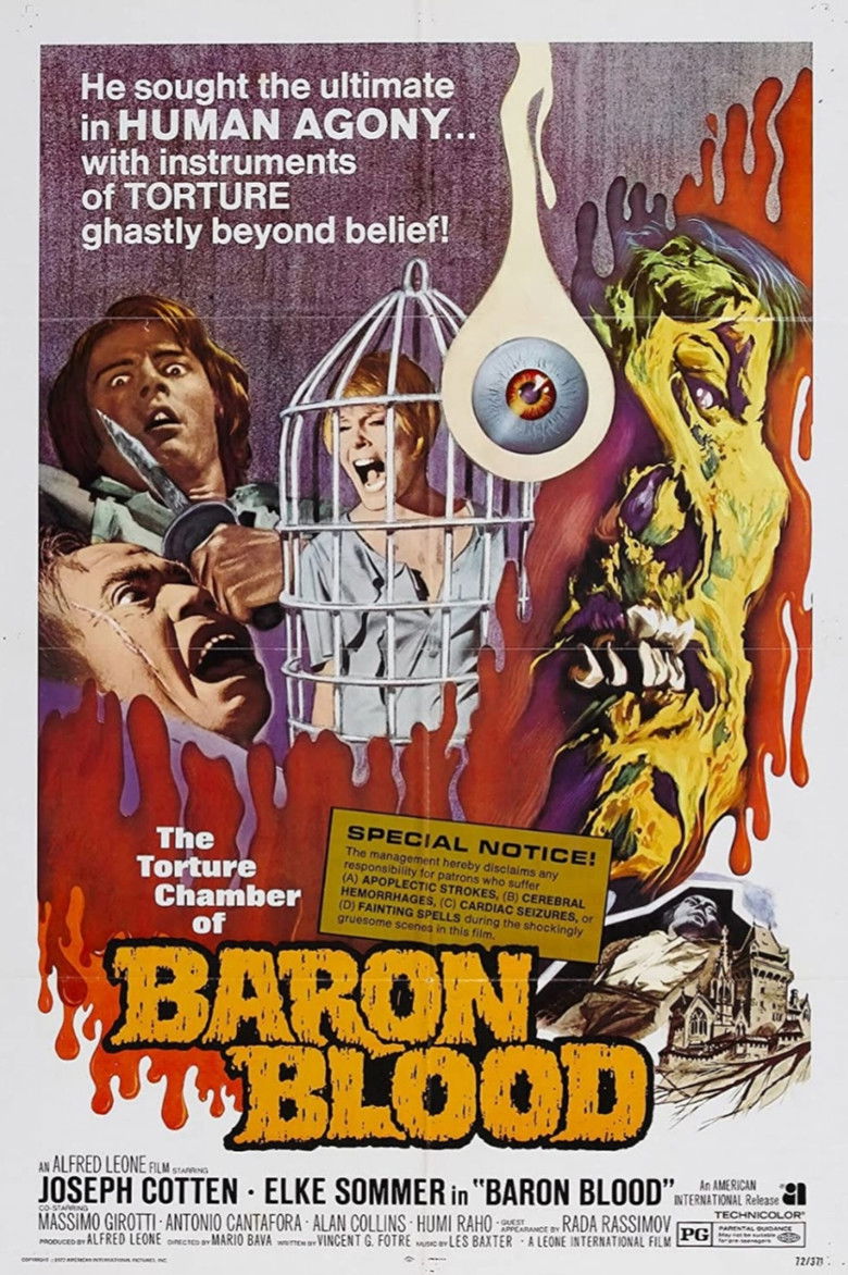 A young man, Peter, returns to Austria in search of his heritage. There he visits the castle of an ancestor, a sadistic Baron who was cursed to a violent death by a witch whom the Baron had burned at the stake. Peter reads aloud the incantation that causes Baron Blood to return and continue his murderous tortures.