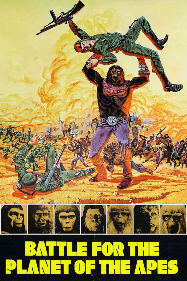 The fifth and final episode in the Planet of the Apes series. After the collapse of human civilization, a community of intelligent apes led by Caesar lives in harmony with a group of humans. Gorilla General Aldo tries to cause an ape civil war and a community of human mutants who live beneath a destroyed city try to conquer those whom they perceive as enemies. All leading to the finale.