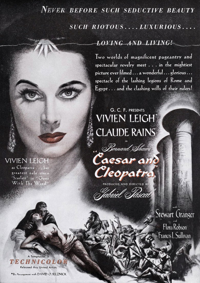 1945 Caesar and Cleopatra The aging Julius Caesar finds himself intrigued by the young Egyptian queen Cleopatra. Credits Director Gabriel Pascal Producer Gabriel Pascal Writer George Bernard Shaw Cinematographers Jack Cardiff , Robert Krasker , Jack Hildyard , Freddie Young Composer Georges Auric Cast Claude Rains , Vivien Leigh , Stewart Granger , Flora Robson , Francis L. Sullivan , Basil Sydney , Cecil Parker , Raymond Lovell , Anthony Eustrel , Ernest Thesiger Studios J. Arthur Rank Organisation , Gabriel Pascal Productions Genres Drama Comedy History Posters 5 US theatrical US international US character US teaser US imax