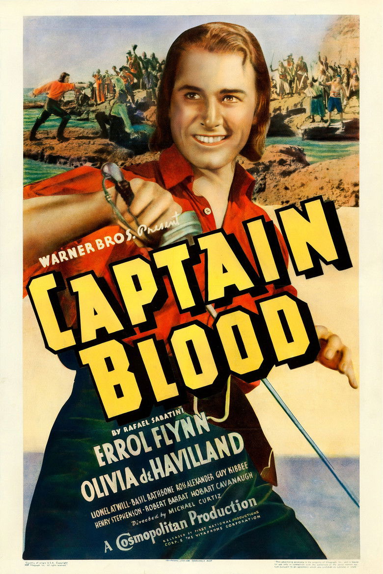 1935 Captain Blood Dr. Peter Blood, unjustly convicted of treason and exiled from England, becomes a notorious pirate. Credits Director Michael Curtiz Producers Harry Joe Brown , Gordon Hollingshead , Hal B. Wallis Writer Casey Robinson Cinematographers Ernest Haller , Hal Mohr Editor George Amy Costume Design Milo Anderson Composer Erich Wolfgang Korngold Cast Errol Flynn , Olivia de Havilland , Lionel Atwill , Basil Rathbone , Ross Alexander , Guy Kibbee , Henry Stephenson , Robert Barrat , Hobart Cavanaugh , Donald Meek Studios Warner Bros. Pictures , First National Pictures , Cosmopolitan Productions Genres Romance History Adventure External IMDb Amazon Posters 5