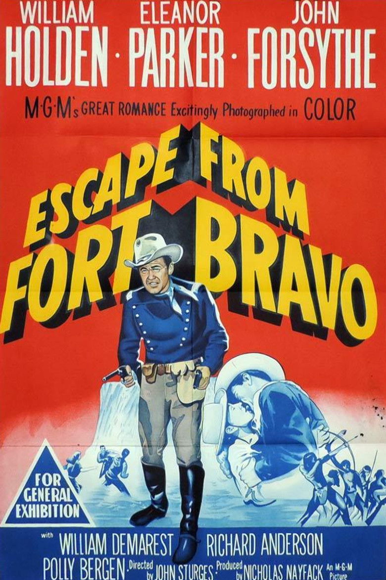 1953 Escape from Fort Bravo A Southern belle frees a Rebel officer and his men from a Union captain's Arizona fort. Credits Director John Sturges Producer Nicholas Nayfack Writers Frank Fenton , Phillip Rock , Michael Pate Cinematographer Robert Surtees Composer Jeff Alexander Cast William Holden , Eleanor Parker , John Forsythe , William Demarest , William Campbell , Polly Bergen , Richard Anderson , Carl Benton Reid , John Lupton , Howard McNear Studio Metro-Goldwyn-Mayer Genre Western Posters 5 US theatrical US international US character US teaser US imax