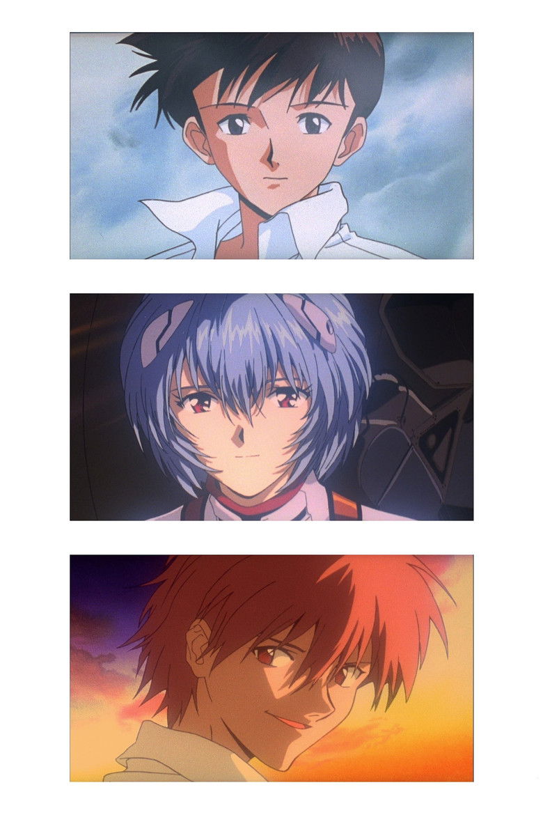 A highly experimental film presenting a story out of chronological order taking place 15 years after a near-apocalyptic catastrophe, about four traumatized 14 year olds who are tasked with piloting massive humanoid decisive weapons called Evangelion, the psychologically maladjusted adults who handle and command them, and the events and forces that affect them or which they take part in as they engage massive hostile invaders known as "Angels."