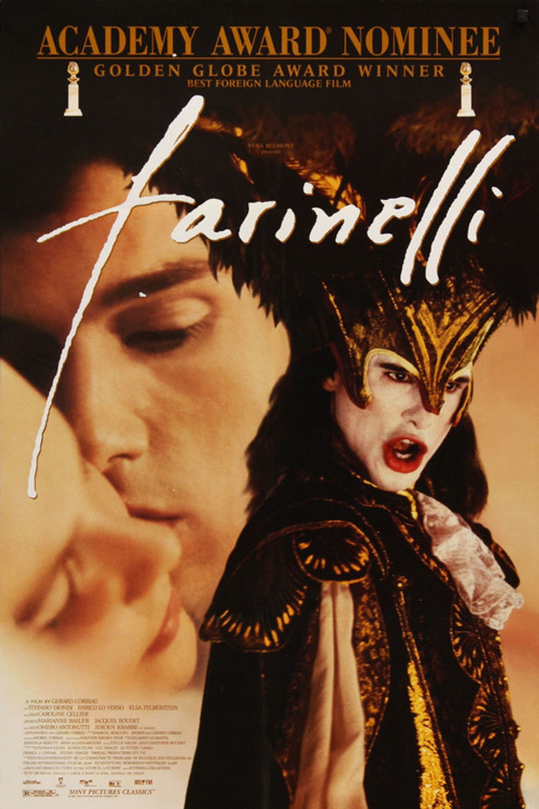 1994 Farinelli The life and career of Italian opera singer Farinelli, considered one of the greatest castrato singers of all time. Credits Director Gérard Corbiau Producers Véra Belmont , Stéphane Thenoz , Dominique Janne Writer Marcel Beaulieu Cinematographer Walther van den Ende Cast Stefano Dionisi , Enrico Lo Verso , Elsa Zylberstein , Jeroen Krabbé , Caroline Cellier , Marianne Basler , Jacques Boudet , Graham Valentine , Pier Paolo Capponi , Renaud du Peloux de Saint Romain Studios Italian International Film , Stéphan Films , MG Genres Drama Music History Posters 5 US theatrical US international US character ES teaser DE imax