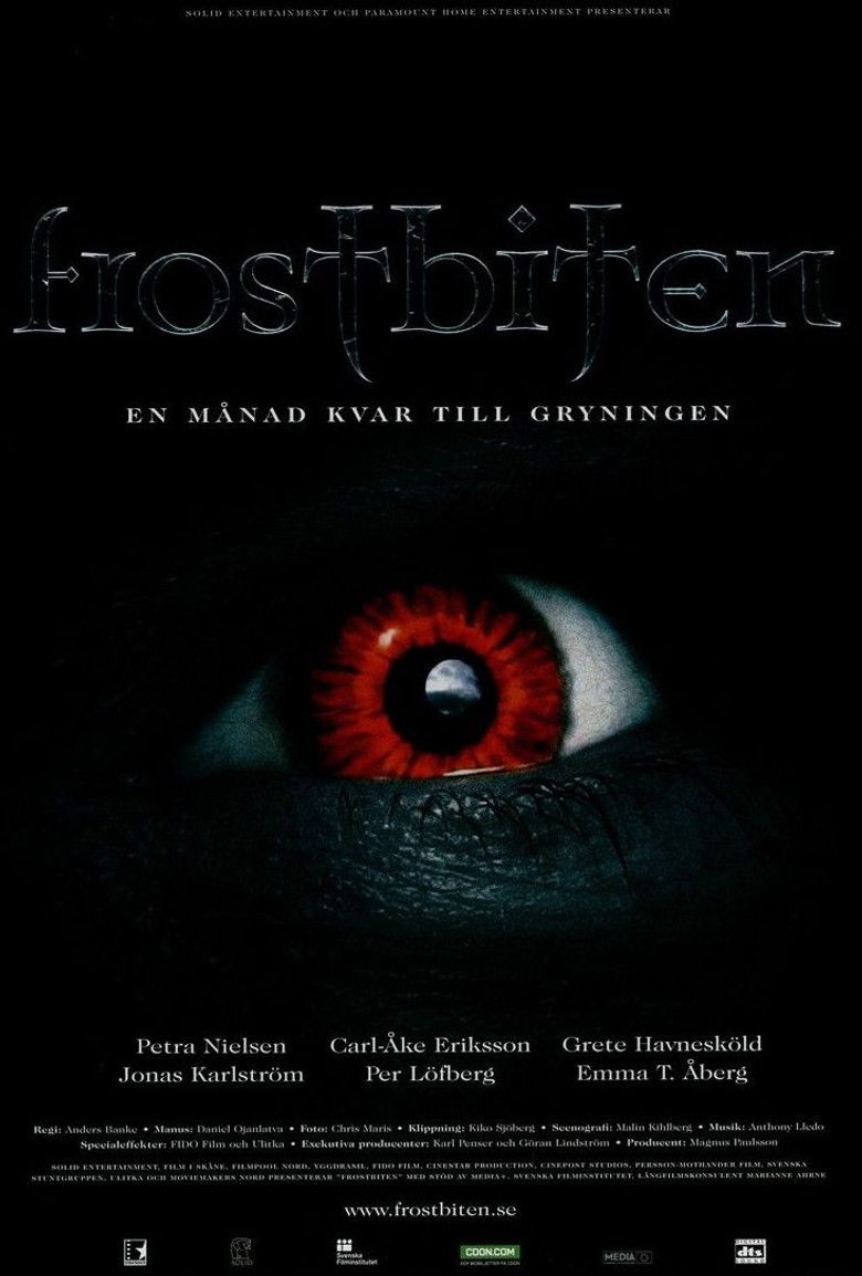 2006 Frostbitten Vampires terrorize a city in Norrbotten, Sweden. Credits Director Anders Banke Producers Göran Lindström , Magnus Paulsson Cinematographer Chris Maris Editor Kiko C.C. Sjöberg Production Design Malin Kihlberg Costume Design Paola Billberg Johansson Composer Anthony Lledo Cast Petra Nielsen , Carl-Åke Eriksson , Grete Havnesköld , Emma Åberg , Jonas Lawes , Niklas Grönberg , Gustav Johansson , Linnea Jonsson , Nour El Refai , Jonas Karlström Studio Cinepost Studios Genres Comedy Horror External IMDb Amazon Posters 5