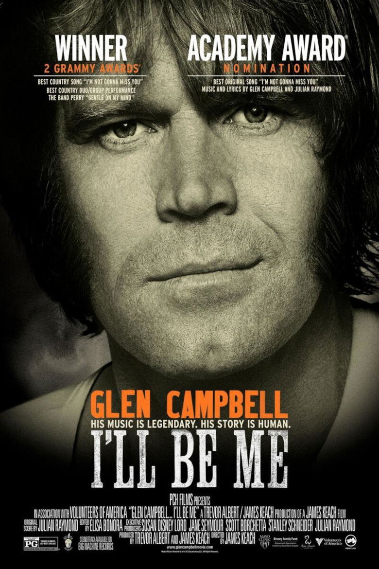 2014 Glen Campbell: I'll Be Me A documentary film detailing Glen Campbell's final tour and his struggle with Alzheimer's disease. Credits Director James Keach Cast Glen Campbell , Jay Leno , Jimmy Webb , Vince Gill , Brad Paisley , The Edge , Sheryl Crow , Bruce Springsteen , Bill Clinton , Julian Raymond Studio PCH Films Genres Music Documentary External IMDb Posters 3 US theatrical US international US character