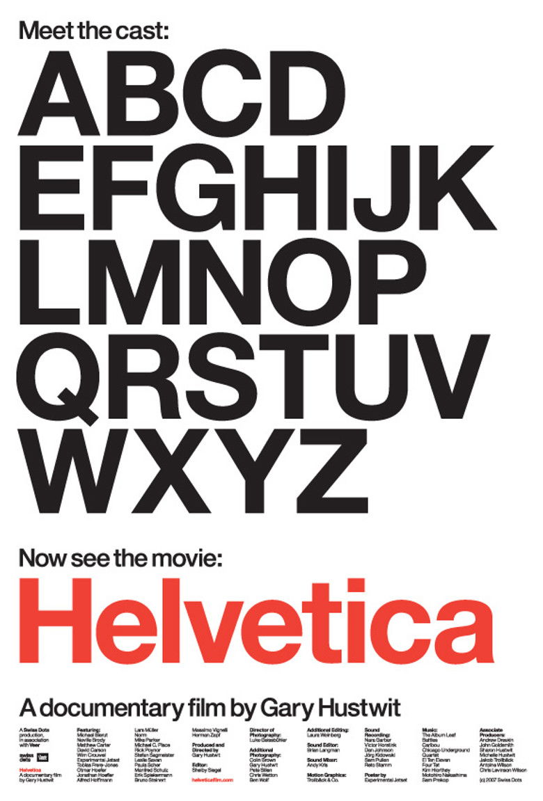 Helvetica is a feature-length independent film about typography, graphic design and global visual culture. It looks at the proliferation of one typeface (which will celebrate its 50th birthday in 2007) as part of a larger conversation about the way type affects our lives. The film is an exploration of urban spaces in major cities and the type that inhabits them, and a fluid discussion with renowned designers about their work, the creative process, and the choices and aesthetics behind their use of type.