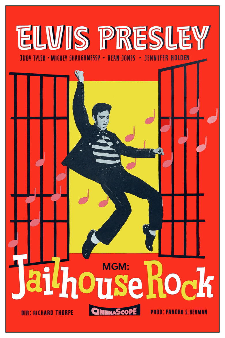 1957 Jailhouse Rock After serving time for manslaughter, young Vince Everett becomes a teenage rock star. Credits Director Richard Thorpe Producer Pandro S. Berman Writers Guy Trosper , Nedrick Young Cinematographer Robert J. Bronner Composer Jeff Alexander Cast Elvis Presley , Judy Tyler , Mickey Shaughnessy , Vaughn Taylor , Jennifer Holden , Dean Jones , Anne Neyland , Percy Helton , Tracey Morgan , Scotty Moore Studios Metro-Goldwyn-Mayer , Avon Productions Genres Romance Drama Music Posters 5 US theatrical US international US character US teaser US imax