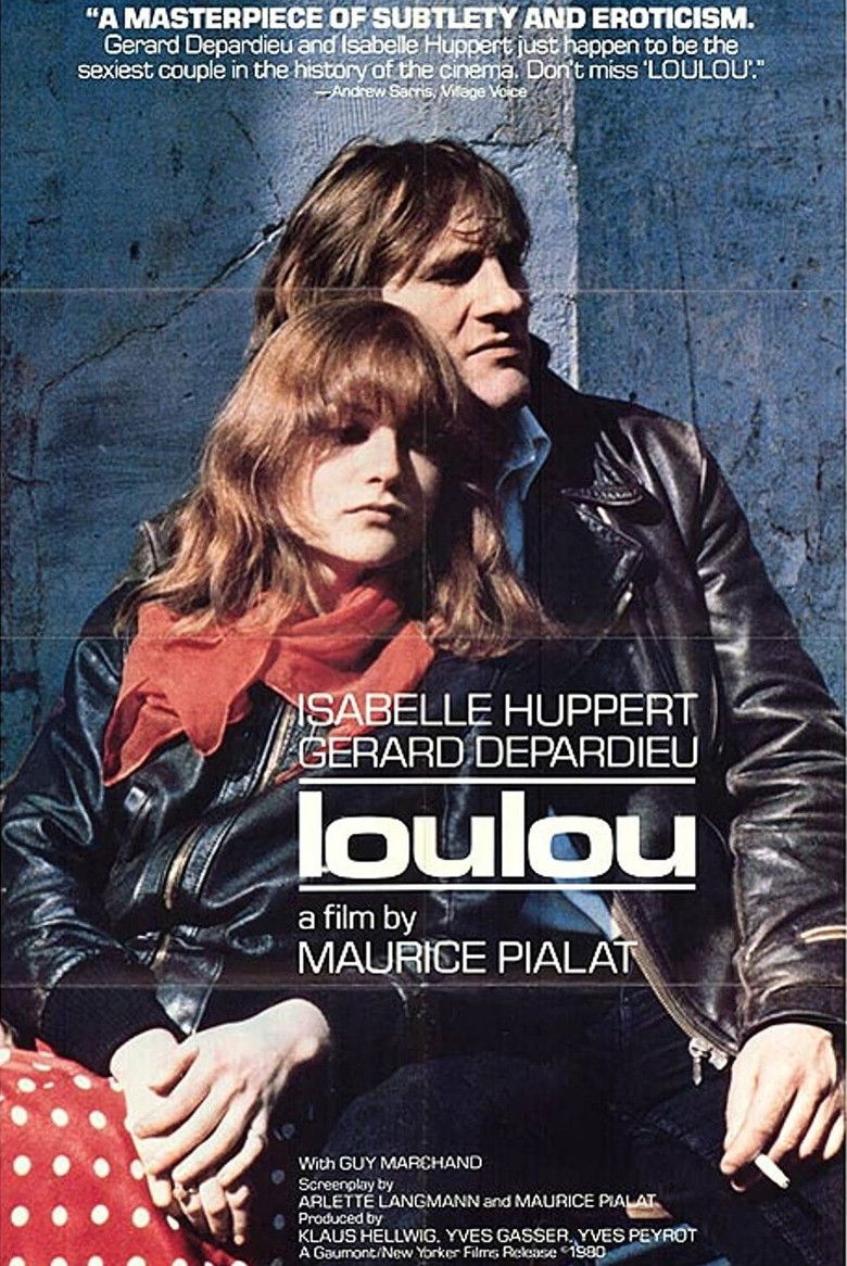 1980 Loulou A bored wife leaves her husband for an unemployed, petty criminal. Credits Director Maurice Pialat Producers Yves Gasser , Klaus Hellwig , Yves Peyrot Writers Arlette Langmann , Maurice Pialat Cinematographers Jacques Loiseleux , Pierre-William Glenn Cast Isabelle Huppert , Gérard Depardieu , Guy Marchand , Humbert Balsan , Christian Boucher , Bernard Tronczak , Frédérique Cerbonnet , Jacqueline Dufranne , Willy Safar , Agnès Rosier Studios Gaumont , Action Films Genres Romance Drama Posters 5 US theatrical US international US character US teaser US imax
