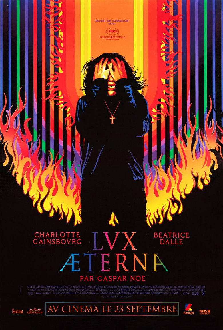 2020 Lux Æterna Two actresses, Béatrice Dalle and Charlotte Gainsbourg, are on a film set telling stories about witches. Credits Director Gaspar Noé Producers Gaspar Noé , Gary Farkas , Lucile Hadžihalilović Writer Gaspar Noé Cinematographer Benoît Debie Editor Jérôme Pesnel Costume Design Frédéric Cambier Cast Charlotte Gainsbourg , Béatrice Dalle , Abbey Lee , Karl Glusman , Clara 3000 , Claude-Emmanuelle Gajan-Maull , Félix Maritaud , Mica Argañaraz , Anatole Devoucoux du Buysson , Paul Hameline Studios Saint Laurent , Les Cinémas de la Zone , Vixens Genres Drama Thriller External IMDb Amazon Posters 5