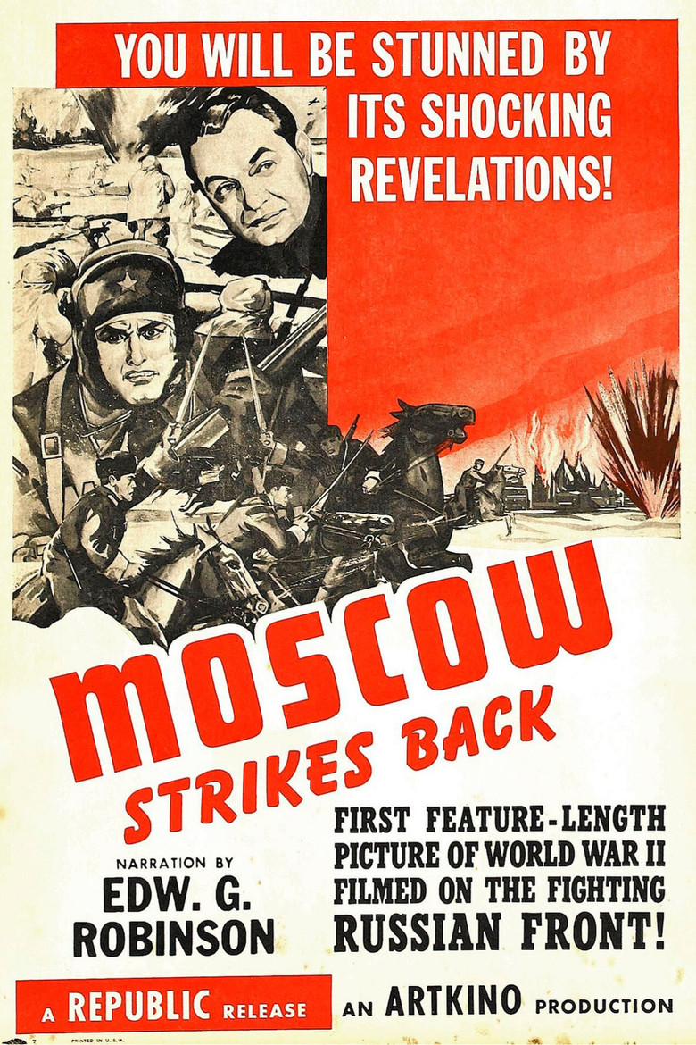 A Soviet documentary chronicling the Battle of Moscow (October 1941 – January 1942), when Red Army forces repelled the German advance on the capital. Shot by numerous frontline cameramen, it combines harrowing footage of combat and civilian suffering with scenes of Nazi atrocities, framed against themes of Russian heroism and cultural survival. Originally released under the title Defeat of the German Armies Near Moscow, the English-language version, narrated by Edward G. Robinson, was retitled Moscow Strikes Back. The film won the 1943 Academy Award for Best Documentary. Warning: contains graphic images.