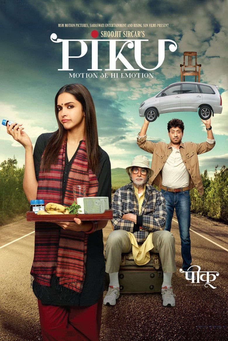 2015 Piku A taxi driver is caught between a dysfunctional relationship between a woman and her father as he drives them to Kolkata. Credits Director Shoojit Sircar Producers Ronnie Lahiri , Sneha Rajani , N.P. Singh Writer Juhi Chaturvedi Cinematographer Kamaljeet Negi Composers Sudhin Dasgupta , Anupam Roy Cast Deepika Padukone , Amitabh Bachchan , Irrfan Khan , Moushumi Chatterjee , Raghubir Yadav , Jisshu Sengupta , Swaroopa Ghosh , Avijit Dutt , Akshay Oberoi , Aniruddha Roy Chowdhury Studios Yash Raj Films , Rising Sun Films , Saraswati Entertainment Creations Limited , MSM Motion Pictures Genres Drama Comedy External IMDb Posters 3 HI theatrical HI international HI character