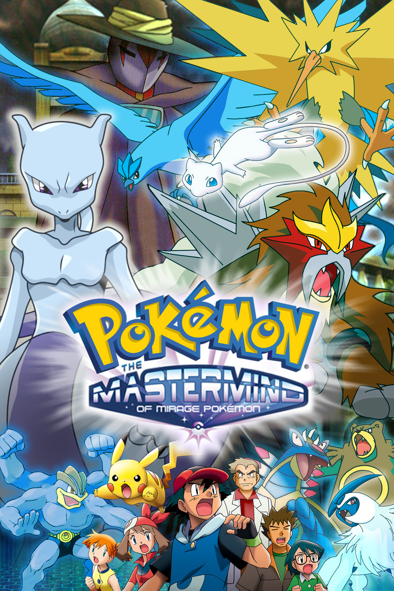 The story of "The Mastermind of Mirage Pokémon" centers on a Pokémon scientist who has developed a new Mirage System to resurrect extinct Pokémon. Satoshi, Haruka, Masato, and Takeshi show up at the Mirage Mansion for a demonstration of this new machine, only to witness the kidnapping of the scientist! Then a mysterious stranger appears and claims that the machine can actually create Pokémon without weaknesses. It’s up to Satoshi and company to preserve the natural balance of the Pokémon world.