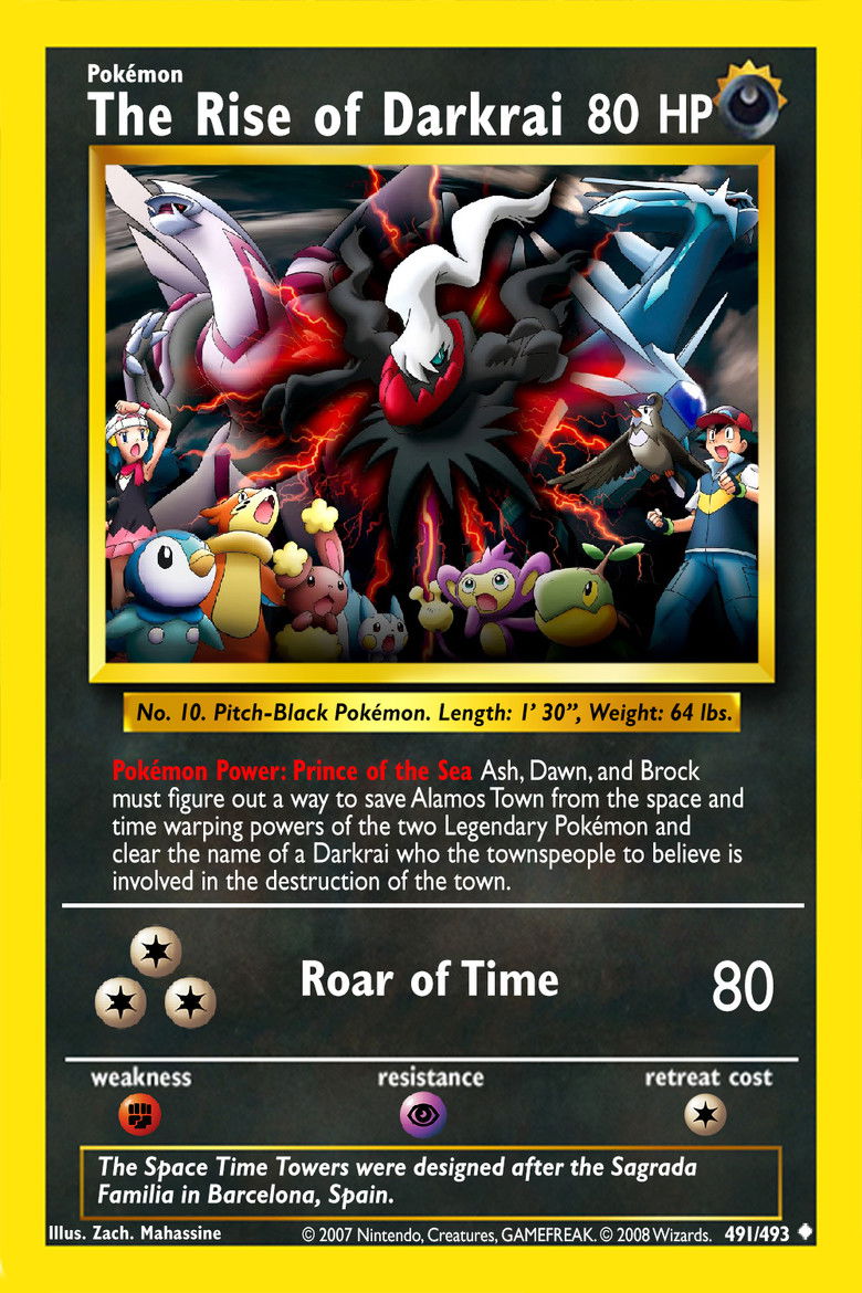 Ash and friends (this time accompanied by newcomer Dawn) arrive at an idyllic village on their way to their next Pokemon contest, where chaos will soon erupt with the prophecy of two Pokemon Gods (Dialga and Palkia) and the arrival of a mysterious, seemingly deadly Pokemon named Darkrai, which has the power to distort space and time.