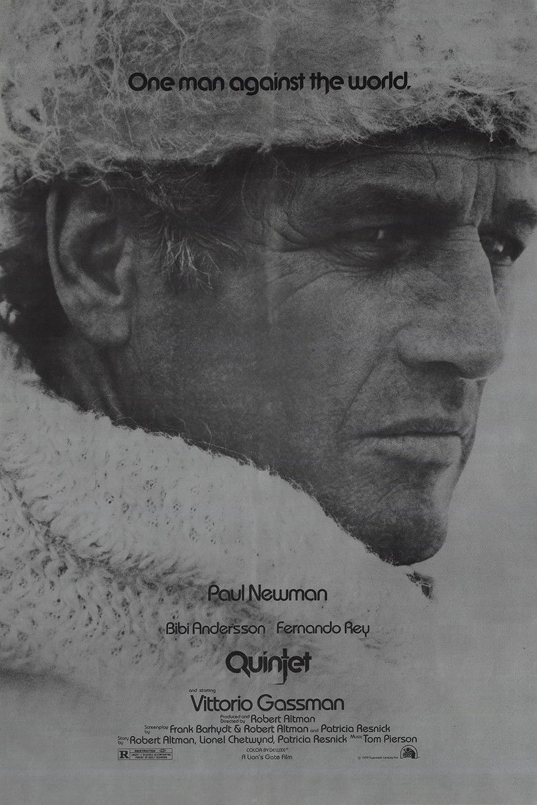 During a future ice age, dying humanity occupies its remaining time by playing a board game called Quintet. For one small group, this obsession is not enough. They play the game with living pieces, and only the winner survives.