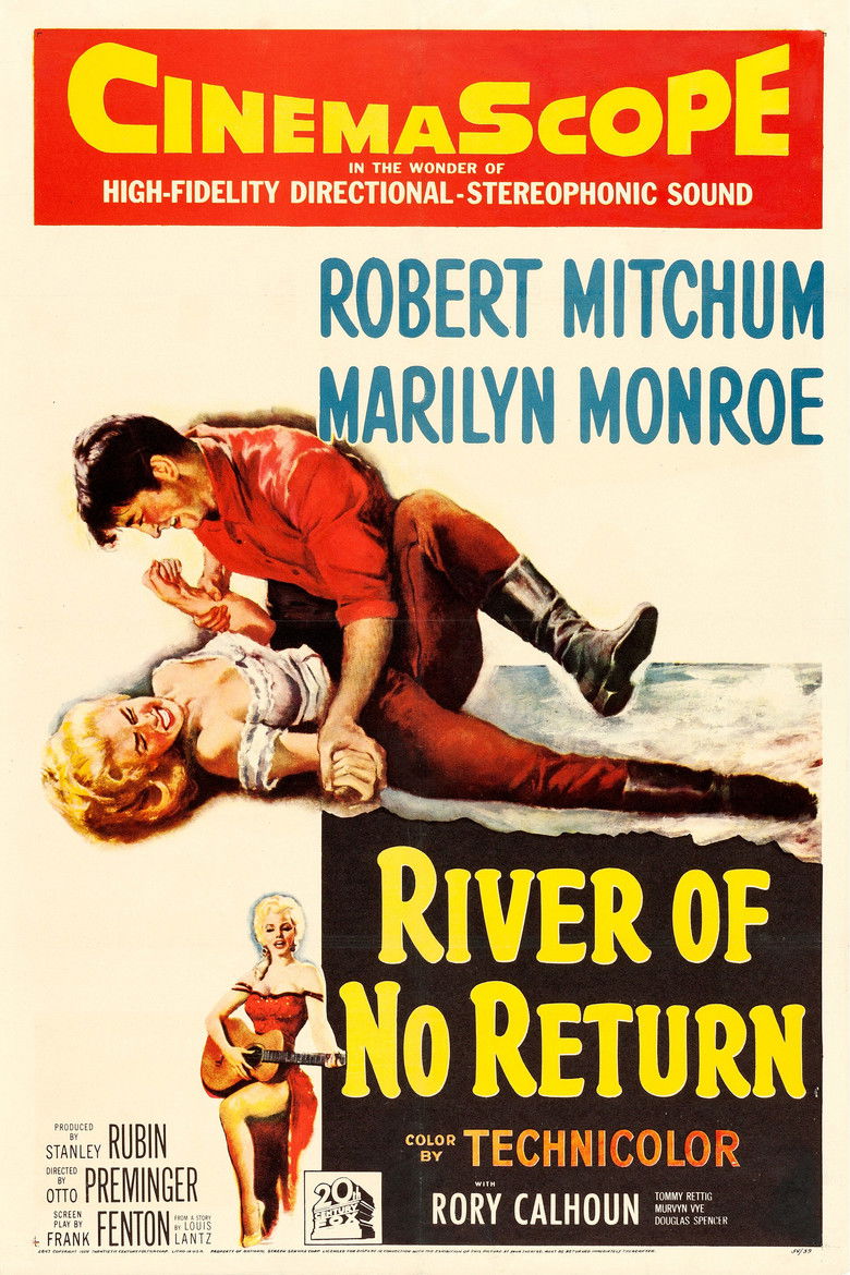 1954 River of No Return An itinerant farmer and his young son help a heart-of-gold saloon singer search for her estranged husband. Credits Director Otto Preminger Producer Stanley Rubin Writers Frank Fenton , Louis Lantz Cinematographer Joseph LaShelle Composer Cyril J. Mockridge Cast Robert Mitchum , Marilyn Monroe , Rory Calhoun , Tommy Rettig , Murvyn Vye , Douglas Spencer , Arthur Shields , Larry Chance , Chuck Hicks , Ann McCrea Studio 20th Century Fox Genres Adventure Western Posters 5 US theatrical US international US character US teaser US imax