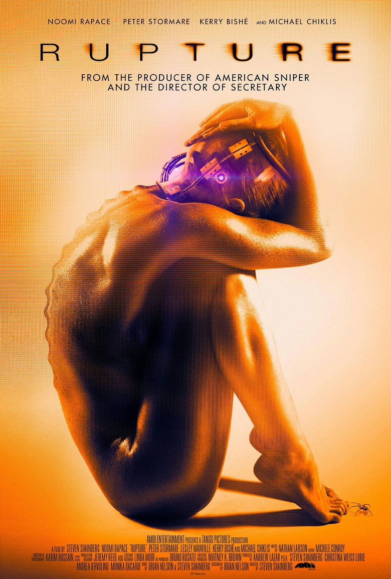 2016 Rupture A single mom tries to break free from a mysterious organization that has abducted her. Credits Director Steven Shainberg Producers Monika Bacardi , Andrea Iervolino , Andrew Lazar Writers Steven Shainberg , Brian Nelson Cinematographer Karim Hussain Production Design Jeremy Reed Costume Design Linda Muir Visual Effectss Wojciech Zieliński , Mohammad Ghorbankarimi Castings Tiffany Little Canfield , Bernard Telsey Cast Noomi Rapace , Peter Stormare , Kerry Bishé , Lesley Manville , Michael Chiklis , Ari Millen , Joel Labelle , Sergio Di Zio , Percy Hynes White , Paul Popowich Studios Splendid Film , BondIt , Tango Pictures , AMBI Group Genres Thriller Science Fiction External IMDb Amazon Posters 5