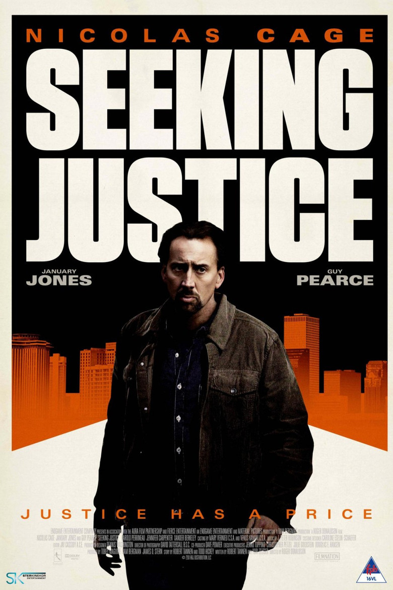 2011 Seeking Justice After his wife is assaulted, a husband enlists the services of a vigilante group to help him settle the score. Credits Director Roger Donaldson Producers Christopher Petzel , Jenno Topping , Lucas Smith Writers Todd Hickey , Robert Tannen Cinematographer David Tattersall Editor Jay Cassidy Production Design J. Dennis Washington Costume Design Caroline Eselin Composer J. Peter Robinson Castings Mary Vernieu , Venus Kanani Cast Nicolas Cage , January Jones , Guy Pearce , Harold Perrineau , Jennifer Carpenter , Xander Berkeley , Irone Singleton , David Jensen , Joe Chrest , Donna DuPlantier Studios Endgame Entertainment , Material Pictures , Ram Bergman Productions , Maguire Entertainment , Aura Film Partnership , Fierce Entertainment Genres Drama Thriller Action External IMDb Amazon Posters 5
