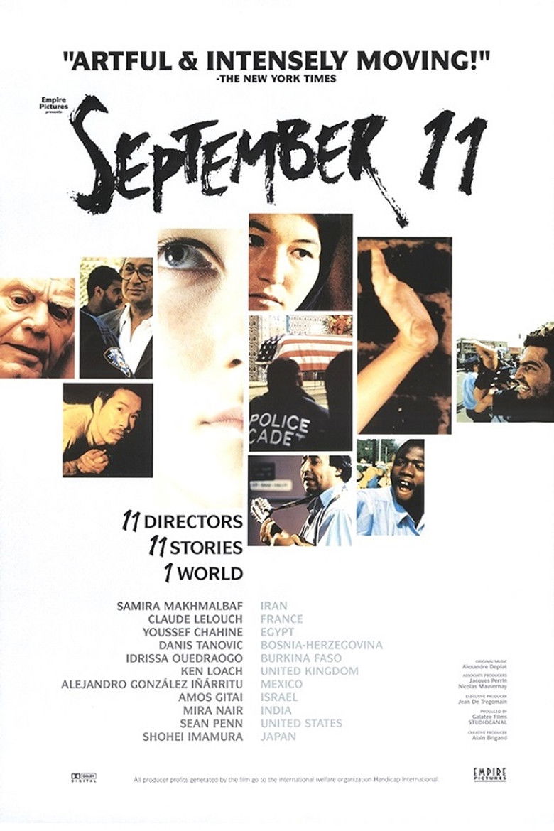 2002 September 11 An anthology of short films inspired by the events of the September 11 World Trade Center attacks. Credits Directors Ken Loach , Idrissa Ouedraogo , Samira Makhmalbaf Editors Rashida Abdel Salam , Kim Bica , Jay Cassidy Production Designs Stephanie Carroll , Kemal Hrustanović Costume Designs Khaled El Sheikh , Monia Fath El Bab Studios StudioCanal , Galatée Films Genre Drama External IMDb Amazon Posters 5