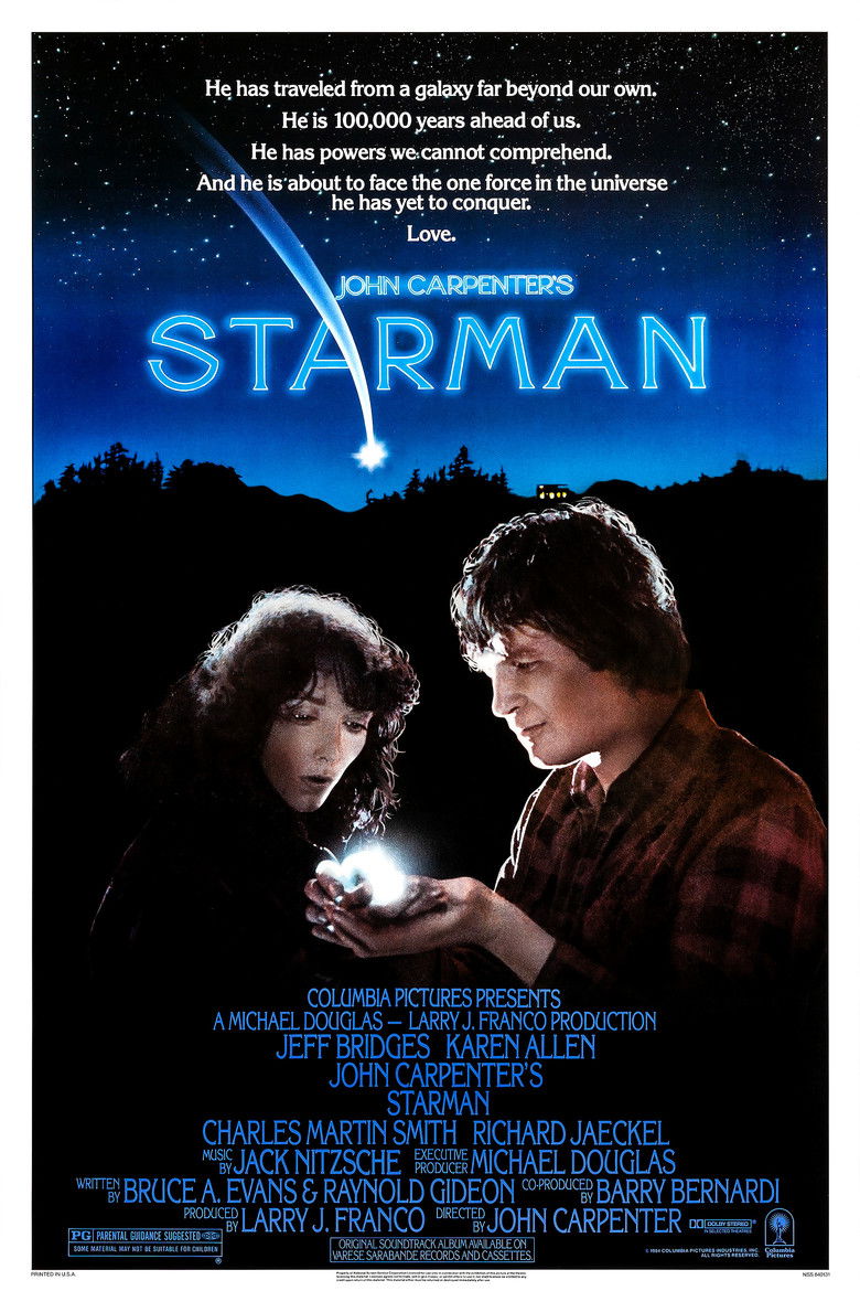 When an alien takes the form of a young widow's husband and asks her to drive him from Wisconsin to Arizona, the government tries to stop them.