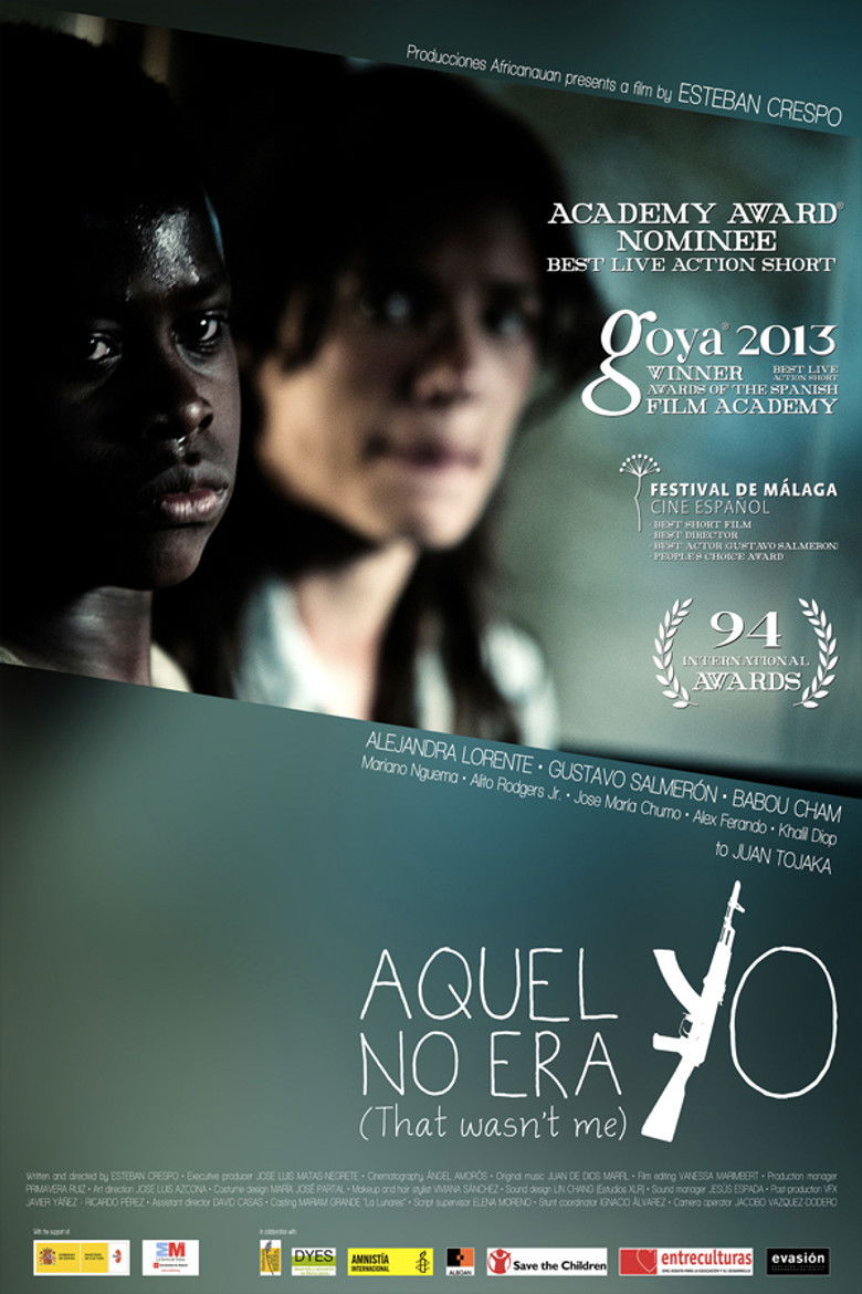 Aquél no Era Yo [That Wasn't Me] is a 2012 Spanish short film directed by Esteban Crespo. It tells the story of Paul and Kaney. Two characters, an African child and a Spanish woman, who could have nothing in common, but will get to join their lives forever through a life-giving shot. Kaney is an African child soldier. He lives with many child soldiers and obeys the orders given by the man who has become like their father, the General of the Rebel Army. Paula is a Spanish aid worker who moved to Africa following her boyfriend, Juanjo, in order to bring help and to rescue the child soldiers who live there. In a border crossing point, Paula and Kaney meet each other and this will be the starting point of this dramatic story, full of fear, violence and redemption. The film was nominated for an Oscar for Best Live Action Short Film.