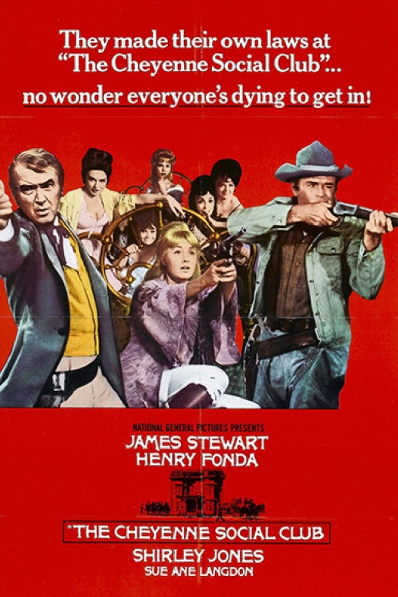 1970 The Cheyenne Social Club Two cowboys inherit a "social club" specializing in satisfying men. Credits Director Gene Kelly Producer Gene Kelly Writer James Lee Barrett Cinematographer William H. Clothier Composer Walter Scharf Cast James Stewart , Henry Fonda , Shirley Jones , Sue Ane Langdon , Elaine Devry , Robert Middleton , Arch Johnson , Dabbs Greer , Jackie Russell , Jackie Joseph Studio National General Pictures Genres Comedy Western Posters 5 US theatrical US international US character US teaser US imax