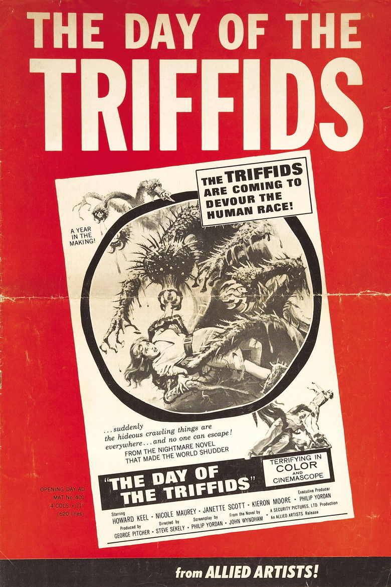 After an unusual meteor shower leaves most of the human population blind, a merchant navy officer must find a way to conquer tall, aggressive plants which are feeding on people and animals.