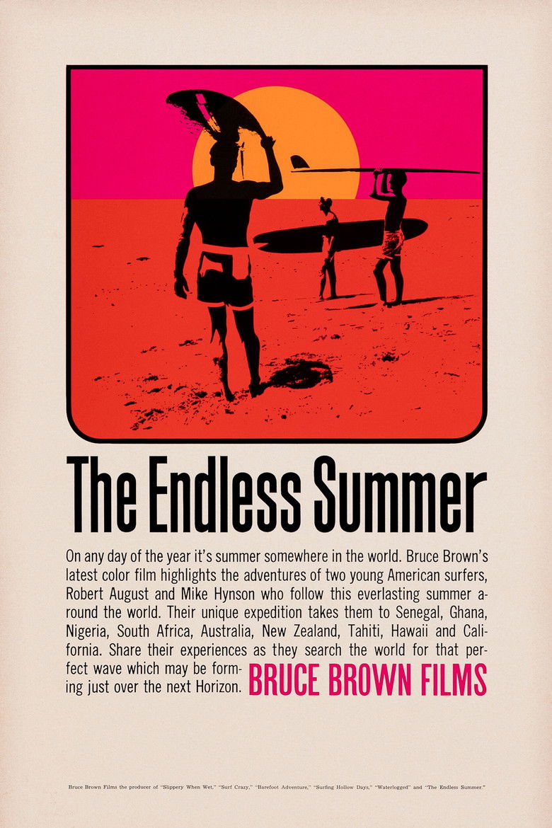 Bruce Brown's The Endless Summer is one of the first and most influential surf movies of all time. The film documents American surfers Mike Hynson and Robert August as they travel the world during California’s winter (which, back in 1965 was off-season for surfing) in search of the perfect wave and ultimately, an endless summer.