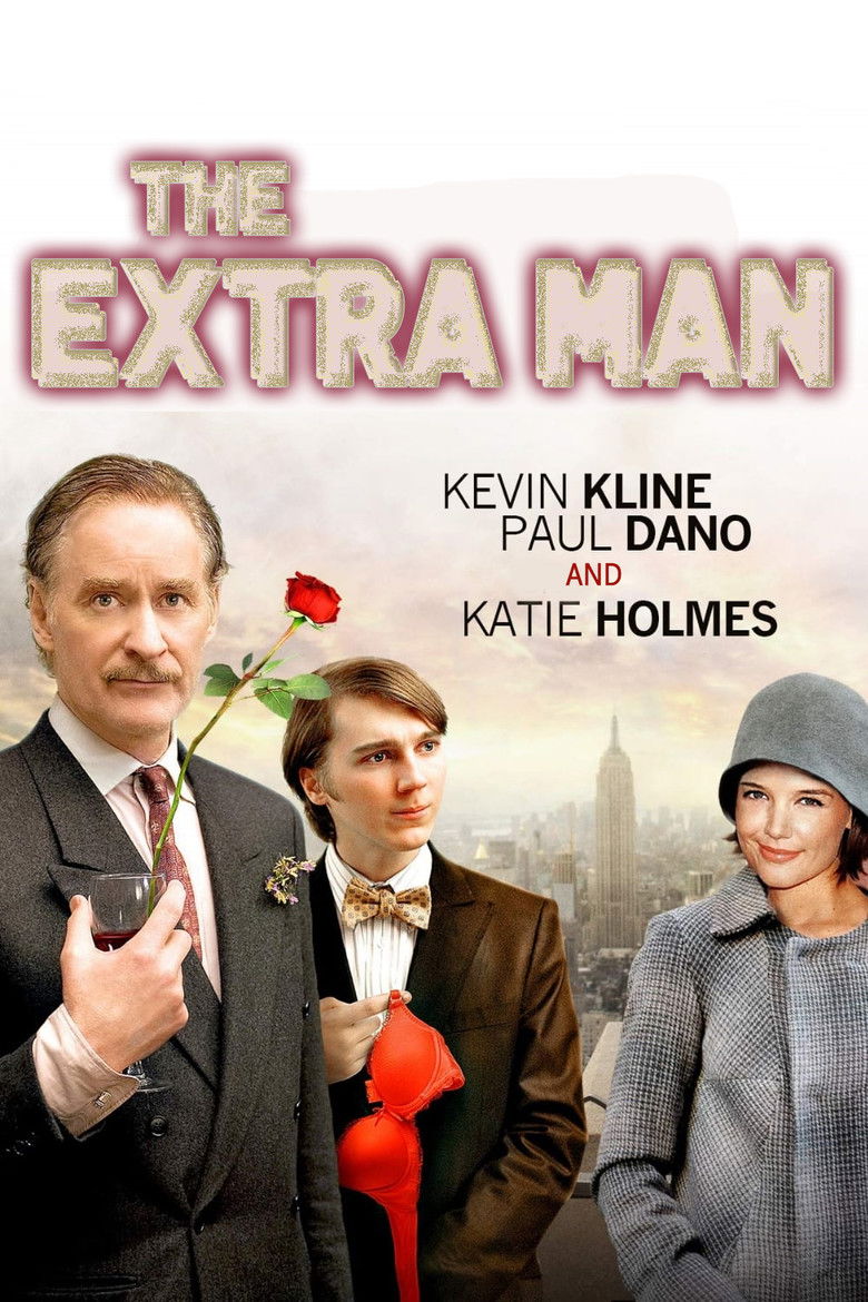 2010 The Extra Man A man who escorts wealthy widows in New York's Upper East Side takes a young aspiring playwright under his wing. Credits Directors Robert Pulcini , Shari Springer Berman Producers Stefanie Azpiazu , Robert Pulcini , Anthony Bregman Writers Robert Pulcini , Jonathan Ames , Shari Springer Berman Cinematographer Terry Stacey Composer Klaus Badelt Cast Kevin Kline , Paul Dano , Katie Holmes , John C. Reilly , Dan Hedaya , Alicia Goranson , Patti D'Arbanville , Celia Weston , John Pankow , Marisa Ryan Studios Wild Bunch , Likely Story , 3 Arts Entertainment Genre Comedy External IMDb Posters 5 US theatrical US international US character PT teaser IT imax