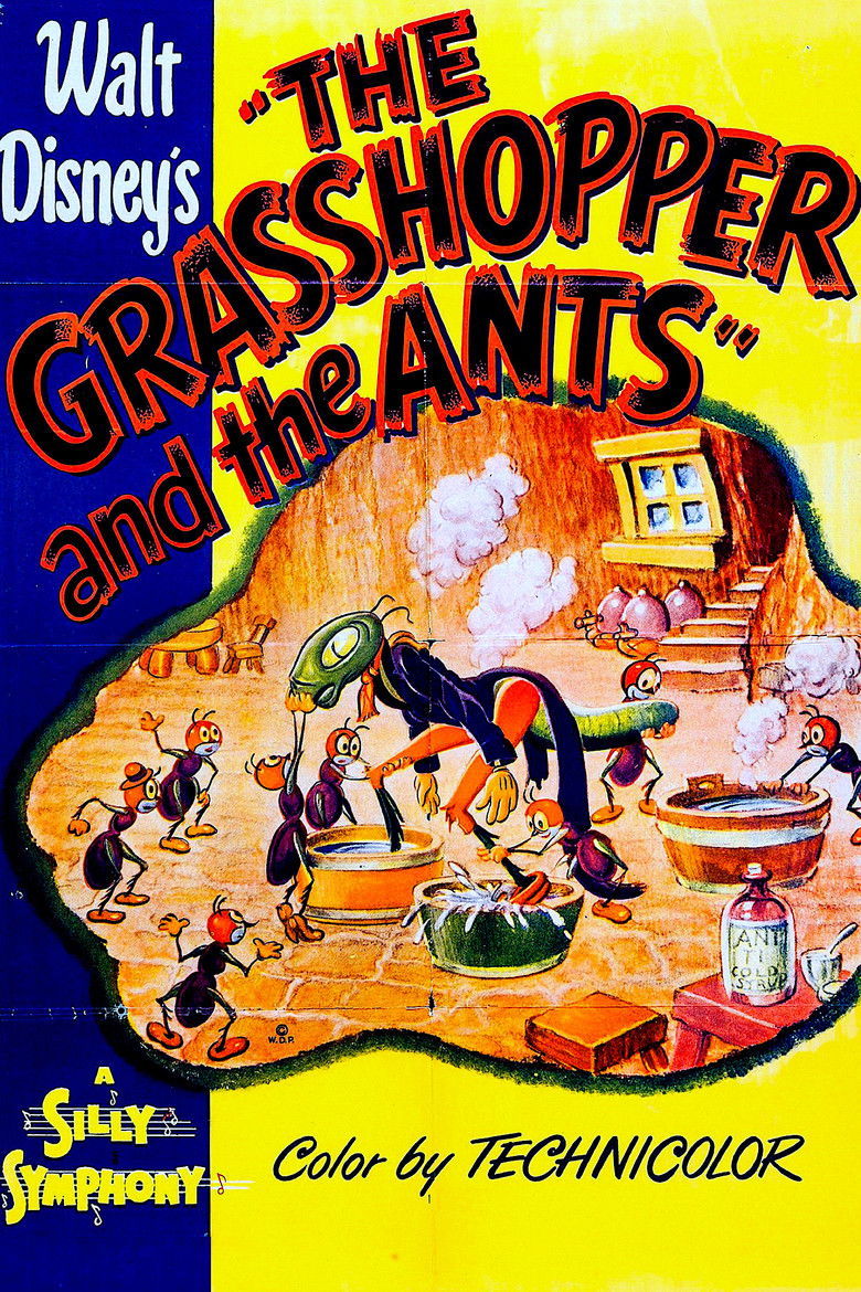 As in the classic fable, the grasshopper plays his fiddle and lives for the moment, while the industrious ants squirrel away massive amounts of food for the winter. With his song, he's able to convince at least one small ant until the queen arrives and scares him back to work. The queen warns the grasshopper of the trouble he'll be in, come winter. Winter comes, and the grasshopper, near starvation, stumbles across the ants, who are having a full-on feast in their snug little tree. They take him in and warm him up. The queen tells him only those who work can eat so he must play for them. Written by Jon Reeves
