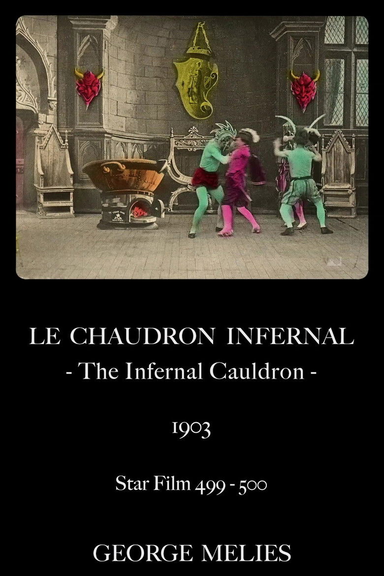 1903 The Infernal Cauldron A green-skinned demon places a woman and two courtiers into a flaming cauldron. Credits Director Georges Méliès Producer Georges Méliès Writer Georges Méliès Cast Georges Méliès Studio Star Film Genres Fantasy Horror Posters 5 US theatrical US international US character US teaser US imax