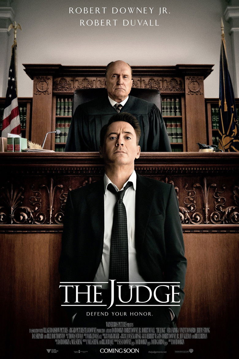 A successful lawyer returns to his hometown for his mother's funeral only to discover that his estranged father, the town's judge, is suspected of murder.