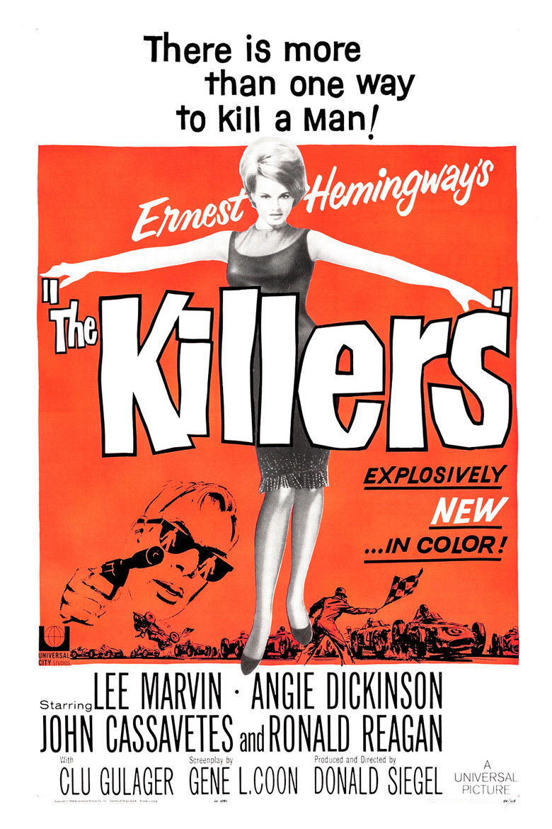 1964 The Killers A hit man and his partner try to find out why their latest victim, a former race-car driver, did not try to get away. Credits Director Don Siegel Producer Don Siegel Writer Gene L. Coon Cinematographer Richard L. Rawlings Editor Richard Belding Costume Design Helen Colvig Composer John Williams Cast Lee Marvin , Angie Dickinson , John Cassavetes , Clu Gulager , Claude Akins , Norman Fell , Ronald Reagan , Virginia Christine , Don Haggerty , Robert Phillips Studios Universal Pictures , Revue Studios Genres Crime Mystery External IMDb Amazon Posters 5