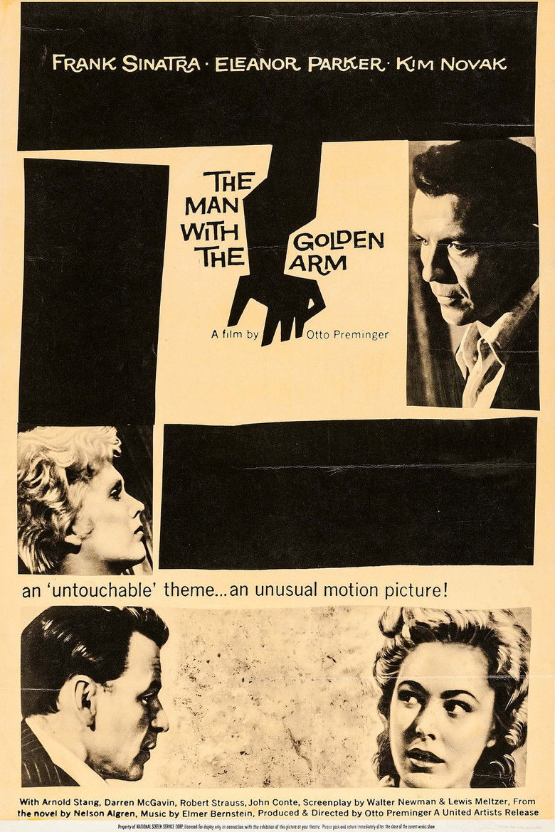 When illegal card dealer and recovering heroin addict Frankie Machine gets out of prison, he decides to straighten up. Armed with nothing but an old drum set, Frankie tries to get honest work as a drummer. But when his former employer and his old drug dealer re-enter his life, Frankie finds it hard to stay clean and eventually finds himself succumbing to his old habits.