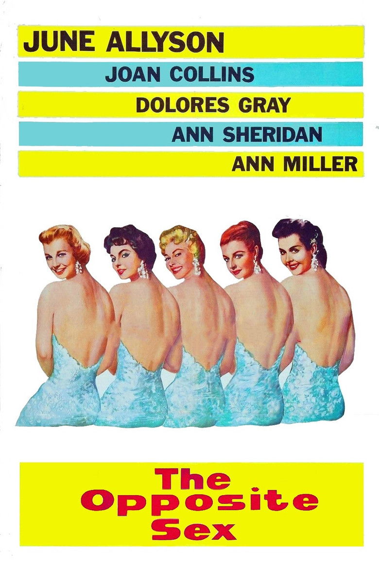 Former radio singer Kay learns from her gossipy friends that her husband, Steve, has had an affair with chorus girl Crystal. Devastated, Kay tries to ignore the information, but when Crystal performs one of her musical numbers at a charity benefit, she breaks down and goes to Reno to file for divorce. However, when she hears that gold-digging Crystal is making Steve unhappy, Kay resolves to get her husband back. The Opposite Sex is a remake of the 1939 comedy The Women.