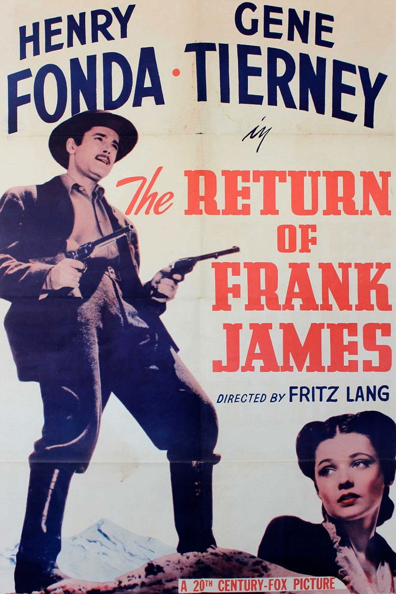 1940 The Return of Frank James Farmer Frank and his ward hunt brother Jesse's killers, the back-shooting Fords. Credits Director Fritz Lang Producer Darryl F. Zanuck Writer Sam Hellman Cinematographer George Barnes Cast Henry Fonda , Jackie Cooper , Gene Tierney , Henry Hull , John Carradine , J. Edward Bromberg , Donald Meek , Eddie Collins , George Barbier , Russell Hicks Studio 20th Century Fox Genre Western Posters 5 US theatrical US international US character US teaser US imax