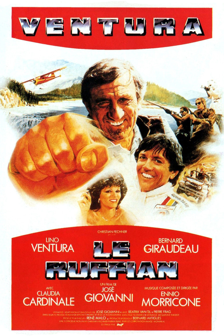 1983 The Ruffian The adventures of a group of friends who plan to recover crates full of gold from a fall in Canada. Credits Director José Giovanni Producers Christian Fechner , Rene Malo , Bernard Artigues Writer José Giovanni Cinematographer Jean-Paul Schwartz Composer Ennio Morricone Cast Lino Ventura , Bernard Giraudeau , Claudia Cardinale , Pierre Frag , Béatrix Van Til , August Schellenberg , Danyl Wahayenni-Martin , Jacklin Webb , Lucien Bérardini , James Ernest Davis Studios Les Films Christian Fechner , Corporation Image M & M Genres Drama Comedy Adventure External IMDb Posters 5 FR theatrical FR international FR character FR teaser FR imax