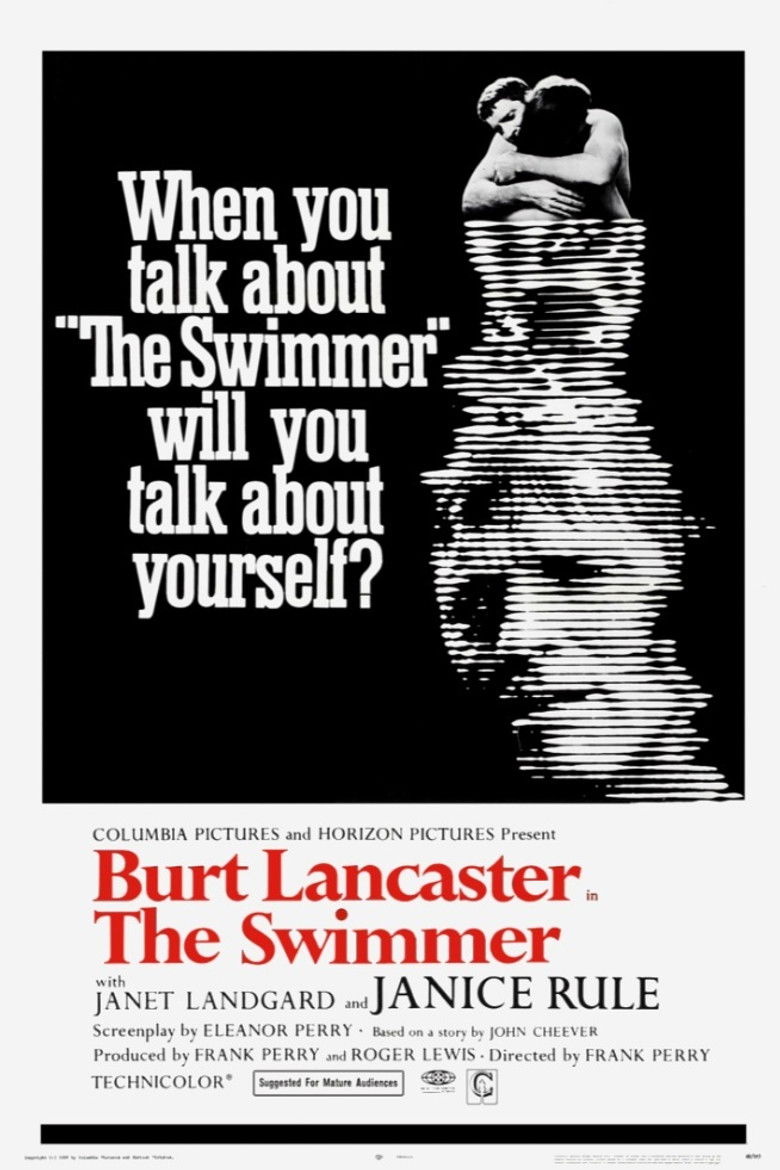 1968 The Swimmer A man spends a summer day swimming home via all the pools in his quiet suburban neighborhood. Credits Director Frank Perry Producers Frank Perry , Roger H. Lewis , Sam Spiegel Writer Eleanor Perry Cinematographer David L. Quaid Composer Marvin Hamlisch Cast Burt Lancaster , Janet Landgard , Janice Rule , Tony Bickley , Marge Champion , Nancy Cushman , Bill Fiore , Rose Gregorio , David Garfield , Kim Hunter Studios Columbia Pictures , Horizon Pictures Genre Drama Posters 5 US theatrical US international US character US teaser US imax