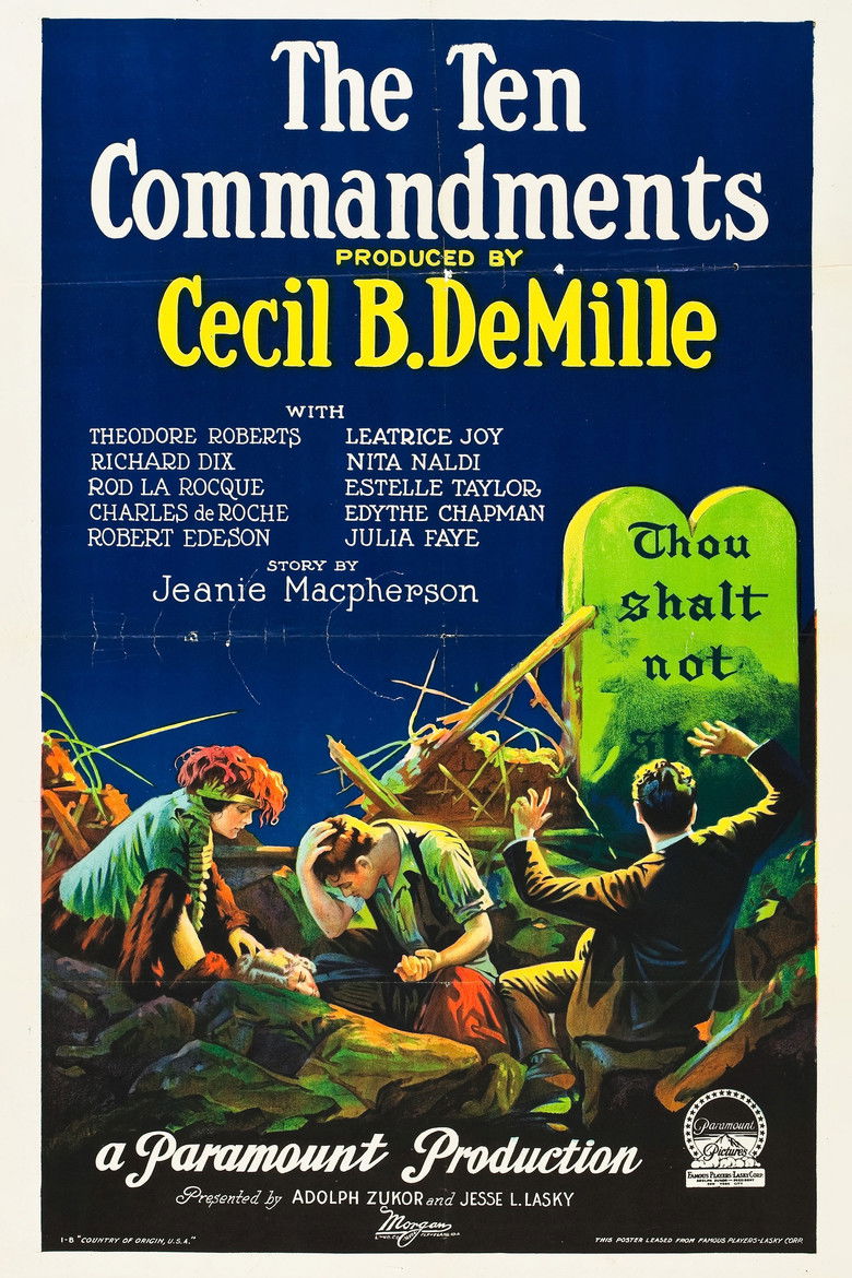 The first part tells the story of Moses leading the Jews from Egypt to the Promised Land, his receipt of the tablets and the worship of the golden calf. The second part shows the efficacy of the commandments in modern life through a story set in San Francisco. Two brothers, rivals for the love of Mary, also come into conflict when John discovers Dan used shoddy materials to construct a cathedral.