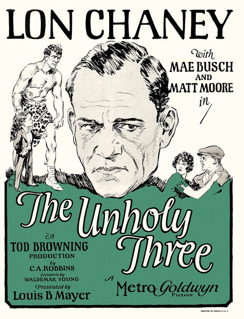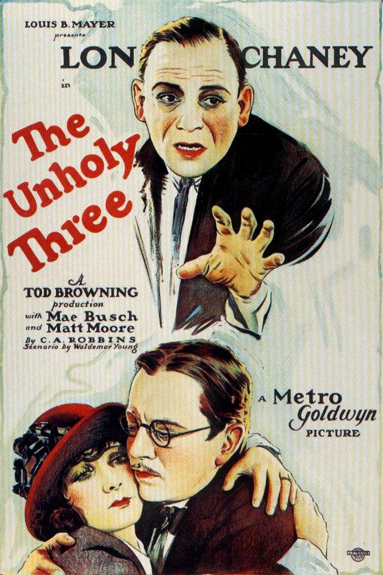 Three sideshow performers form a conspiracy known as "The Unholy Three" - a ventriloquist, midget, and strongman working together to commit a series of robberies.