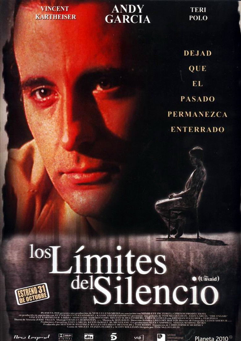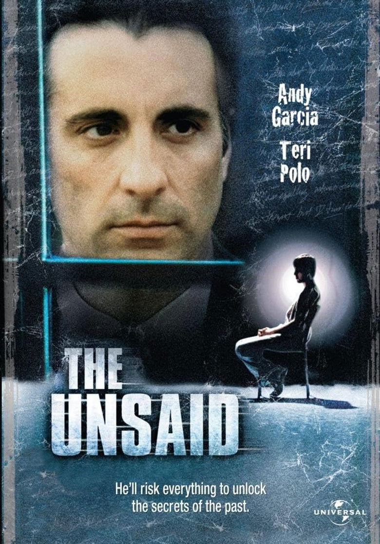 2001 The Unsaid A doctor dealing with the aftermath of his son's death tries to help a troubled young man. Credits Director Tom McLoughlin Writers Christopher Murphey , Miguel Tejada-Flores , Scott Williams Cinematographer Lloyd Ahern II Editor Charles Bornstein Cast Andy Garcia , Vincent Kartheiser , Linda Cardellini , Teri Polo , Chelsea Field , Trevor Blumas , David Millbern , Brendan Fletcher , Sam Bottoms , Sarah Deakins Studio New Legend Media Genre Thriller External IMDb Amazon Posters 5