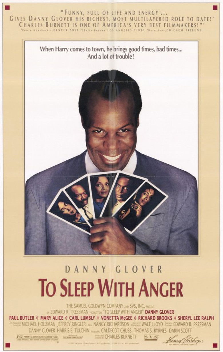 1990 To Sleep with Anger An enigmatic drifter from the South comes to visit an old acquaintance who now lives in South-Central LA. Credits Director Charles Burnett Producers Darin Scott , Thomas S. Byrnes , Caldecot Chubb Writer Charles Burnett Cinematographer Walt Lloyd Composer Stephen James Taylor Cast Danny Glover , Paul Butler , Mary Alice , Richard Brooks , Carl Lumbly , Sheryl Lee Ralph , Vonetta McGee , Ethel Ayler , Julius Harris , Sy Richardson Studios SVS Films , The Samuel Goldwyn Company Genre Drama Posters 5 US theatrical US international US character US teaser US imax