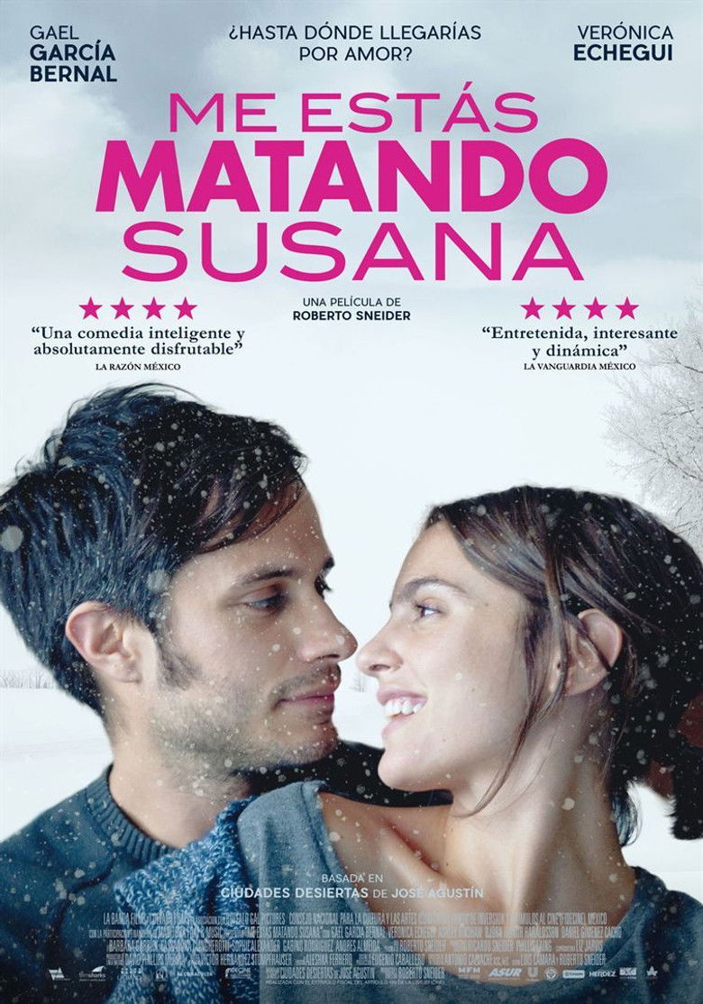2016 You're Killing Me Susana An actor's world comes crashing down after he learns that his wife has left him. Credits Director Roberto Sneider Producers Roberto Sneider , Ricardo Sneider , Phyllis Laing Writers Roberto Sneider , Luis Cámara Cast Gael García Bernal , Verónica Echegui , Ashley Hinshaw , Hlyunr Harraldson , Barbara Garrick , Jadyn Wong , Adam Hurtig , Andrés Almeida , Ilse Salas , Sophie Alexander-Katz Studios Instituto Mexicano de Cinematografía , EFICINE 189 , Videocine , Buffalo Gal Pictures , FIDECINE , La Banda Films , Cuévano Films Genres Romance Drama Comedy Posters 5 US theatrical EL international ES character ES teaser ES imax